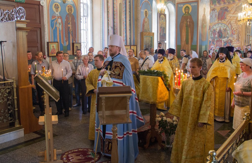 Его Высокопреосвященству сослужили: ключарь Спасо-Преображенского кафедрального собора, протоиерей Георгий Сивков; настоятель храма свт. Иннокентия, иеромонах Николай (Дроздов), настоятель храма св. прмц. вел. кнг. Елизаветы, иерей Владимир Гасюков, настоятель храма св. блгв. кн. Александра Невского, иерей Василий Диденко, а также духовенство храма в священном сане.
