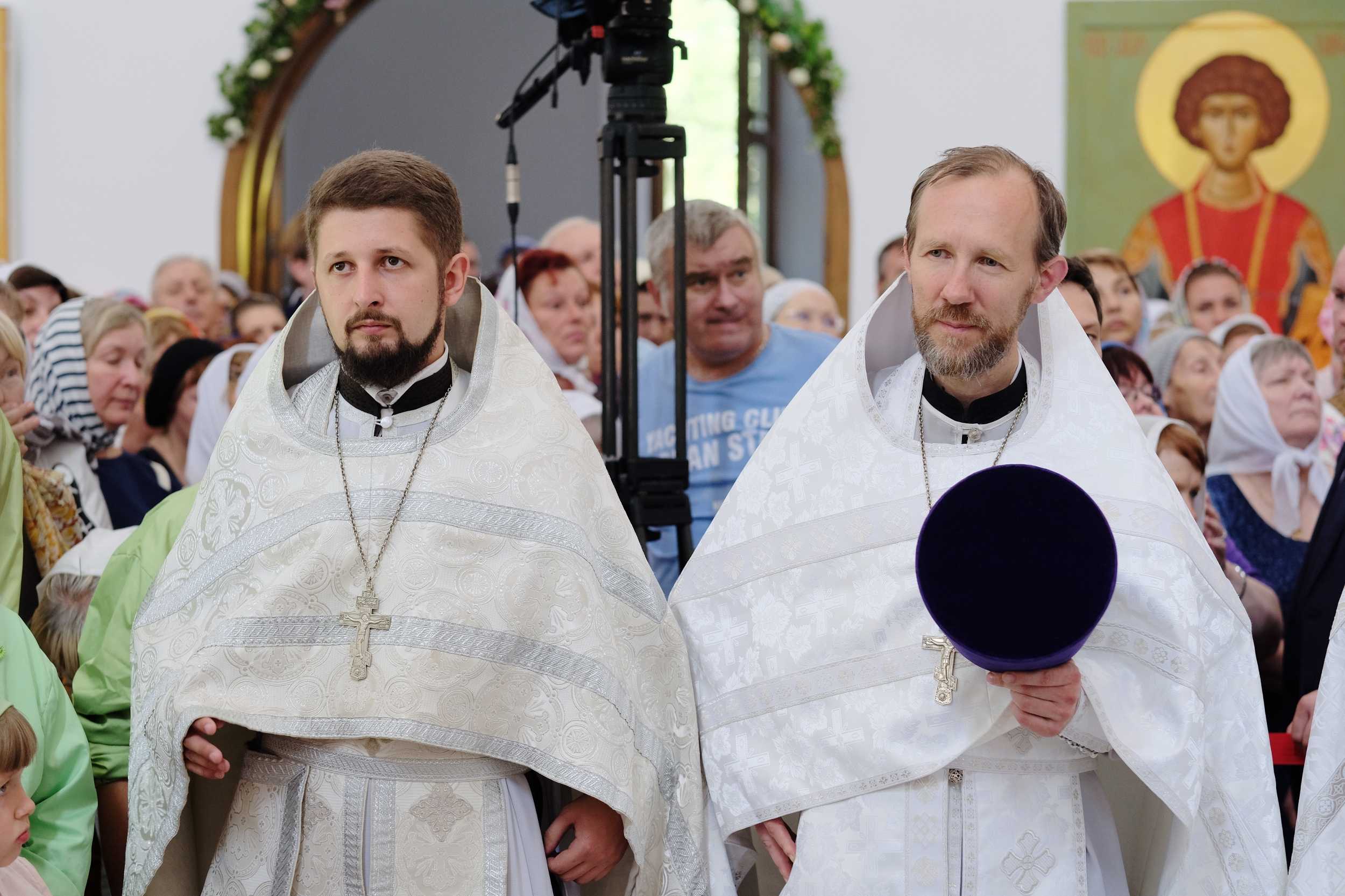 Его Святейшеству сослужили: архиепископ Солнечногорский Сергий, руководитель Административного секретариата Московской Патриархии; епископ Бронницкий Парамон, наместник Донского ставропигиального монастыря, управляющий Северным и Северо-Западным московскими викариатствами; протоиерей Сергий Куликов, настоятель храма святых бессребреников Космы и Дамиана в Космодемьянском, благочинный Знаменского округа Северного московского викариатства; протоиерей Димитрий Синицын, настоятель храма блаженной Матроны Московской в Дмитровском г. Москвы; протоиерей Димитрий Смирнов, председатель Патриаршей комиссии по вопросам семьи, защиты материнства и детства, настоятель храма Благовещения Пресвятой Богородицы в Петровском парке г. Москвы; протоиерей Георгий Таранушенко, настоятель храма святых мучеников и страстотерпцев Бориса и Глеба в Дегунине г. Москвы; протоиерей Михаил Дудко, настоятель храма святителя Иннокентия, митрополита Московского, в Бескудникове г. Москвы; протоиерей Андрей Марущак, клирик кафедрального соборного Храма Христа Спасителя г. Москвы; столичное духовенство.