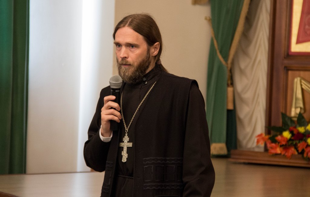На вопросы гостей показа отвечал лектор — преподаватель духвной семинарии иерей Олег Кузнецов.
