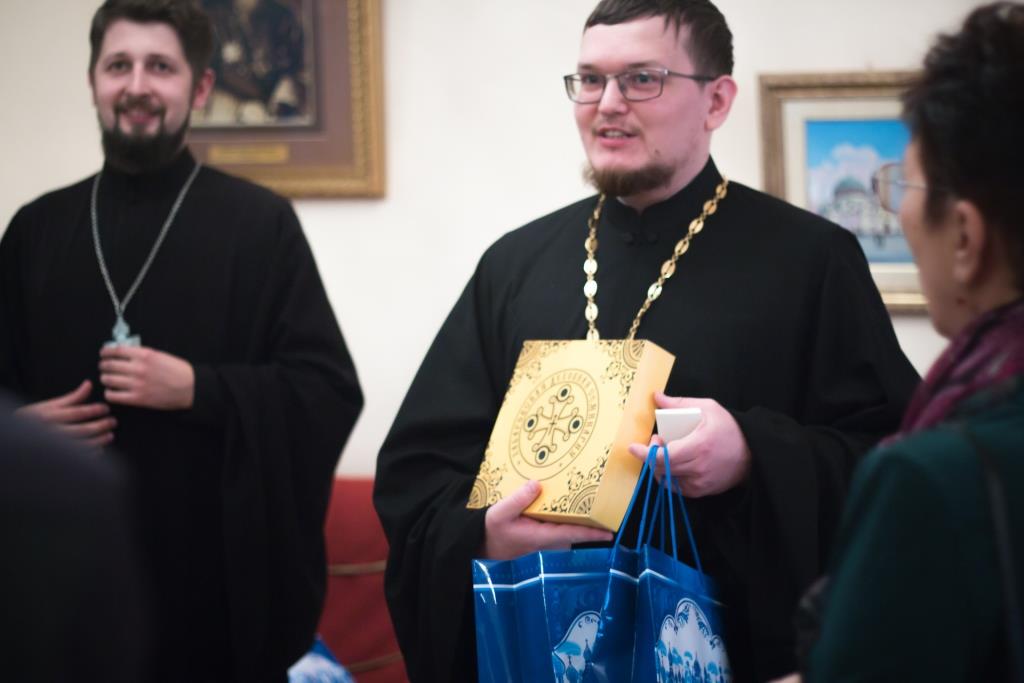 Разумеется, мы не смогли отпустить таких важных гостей без подарков. Каждому присутствующему первый проректор, священник Дионисий Проскурин подарил на память пряник с изображением Хабаровской духовной семинарии. В завершении на память было сделано общее фото.
