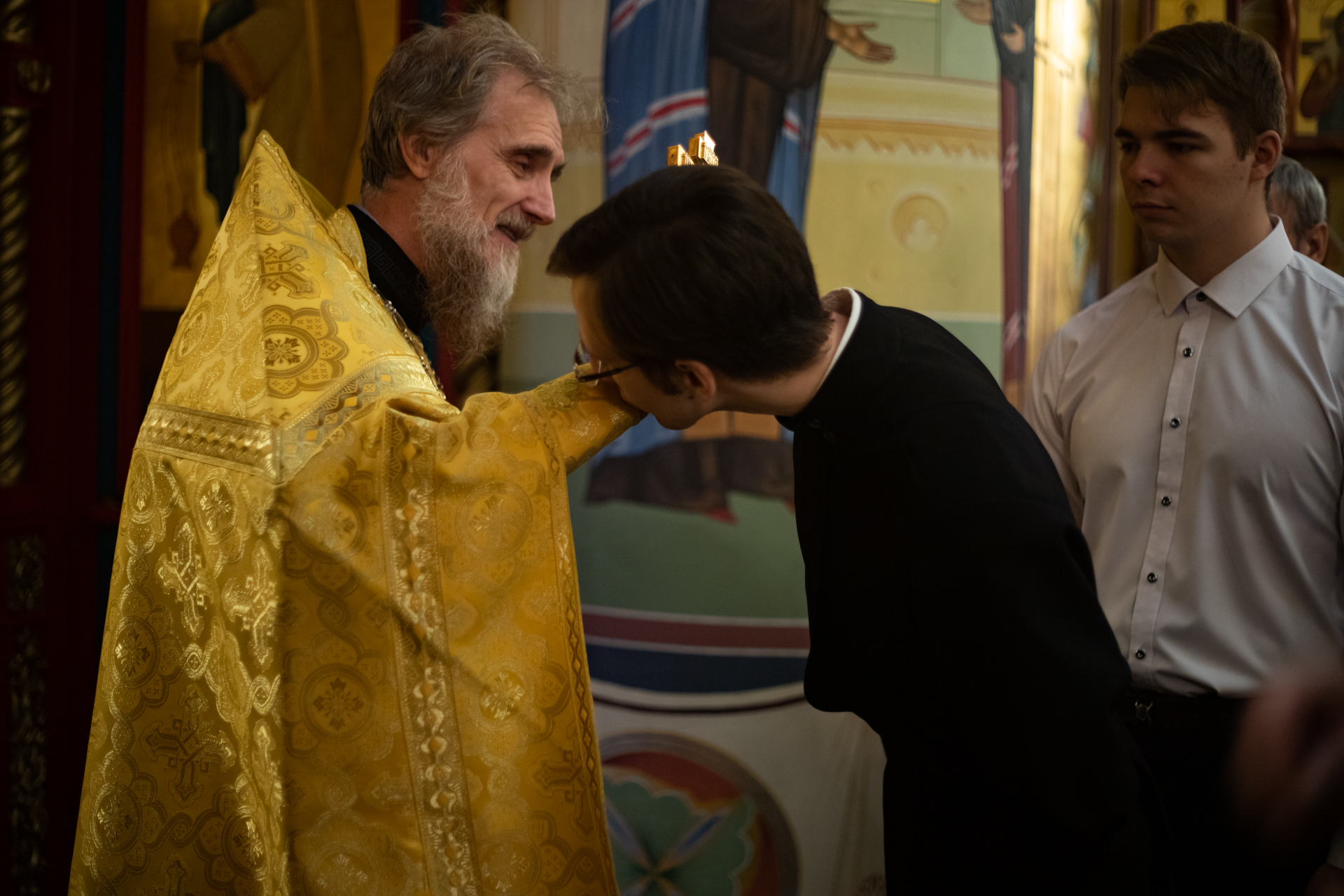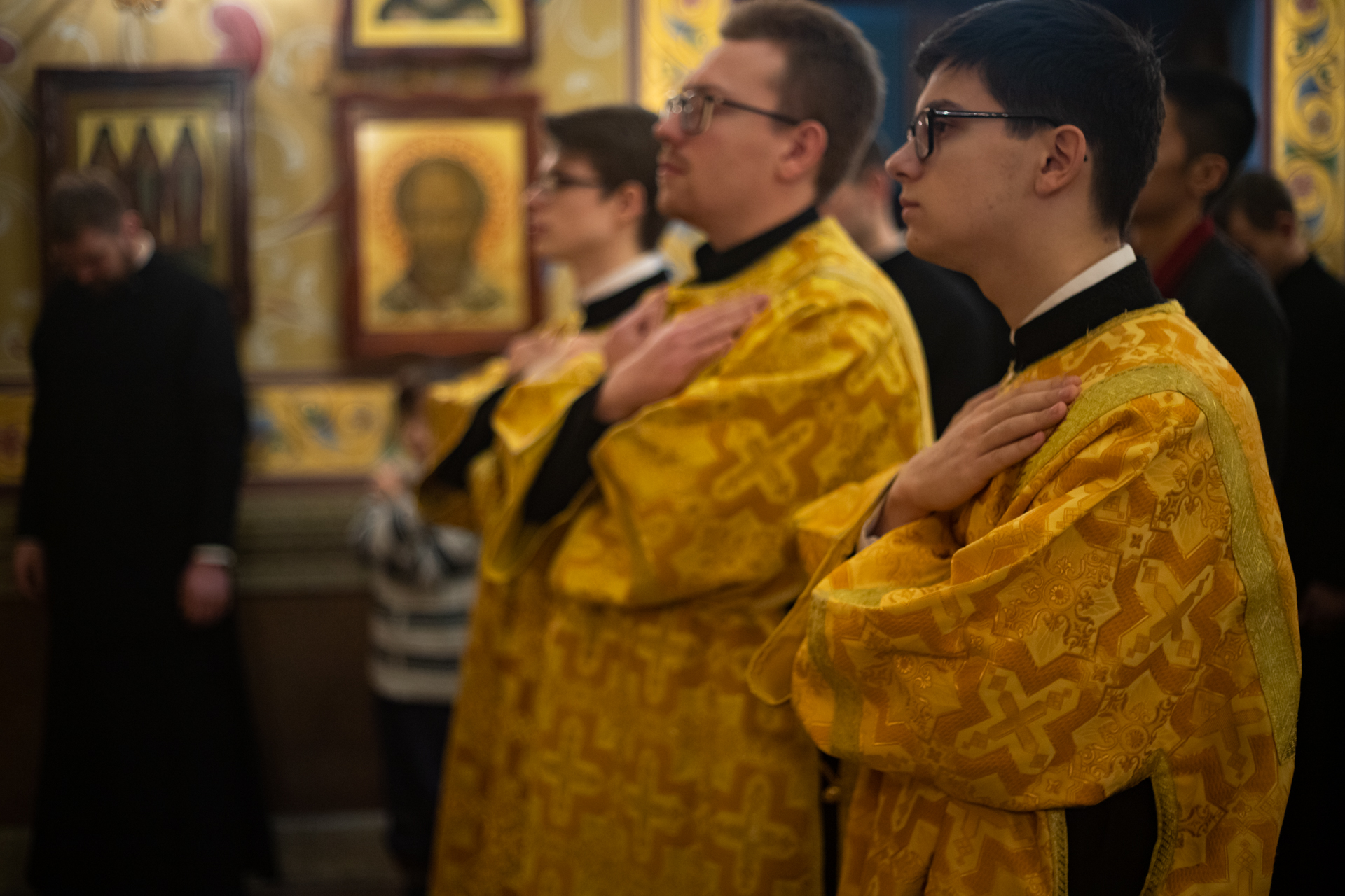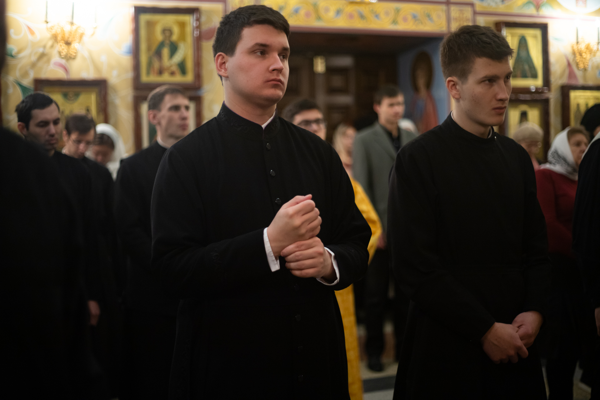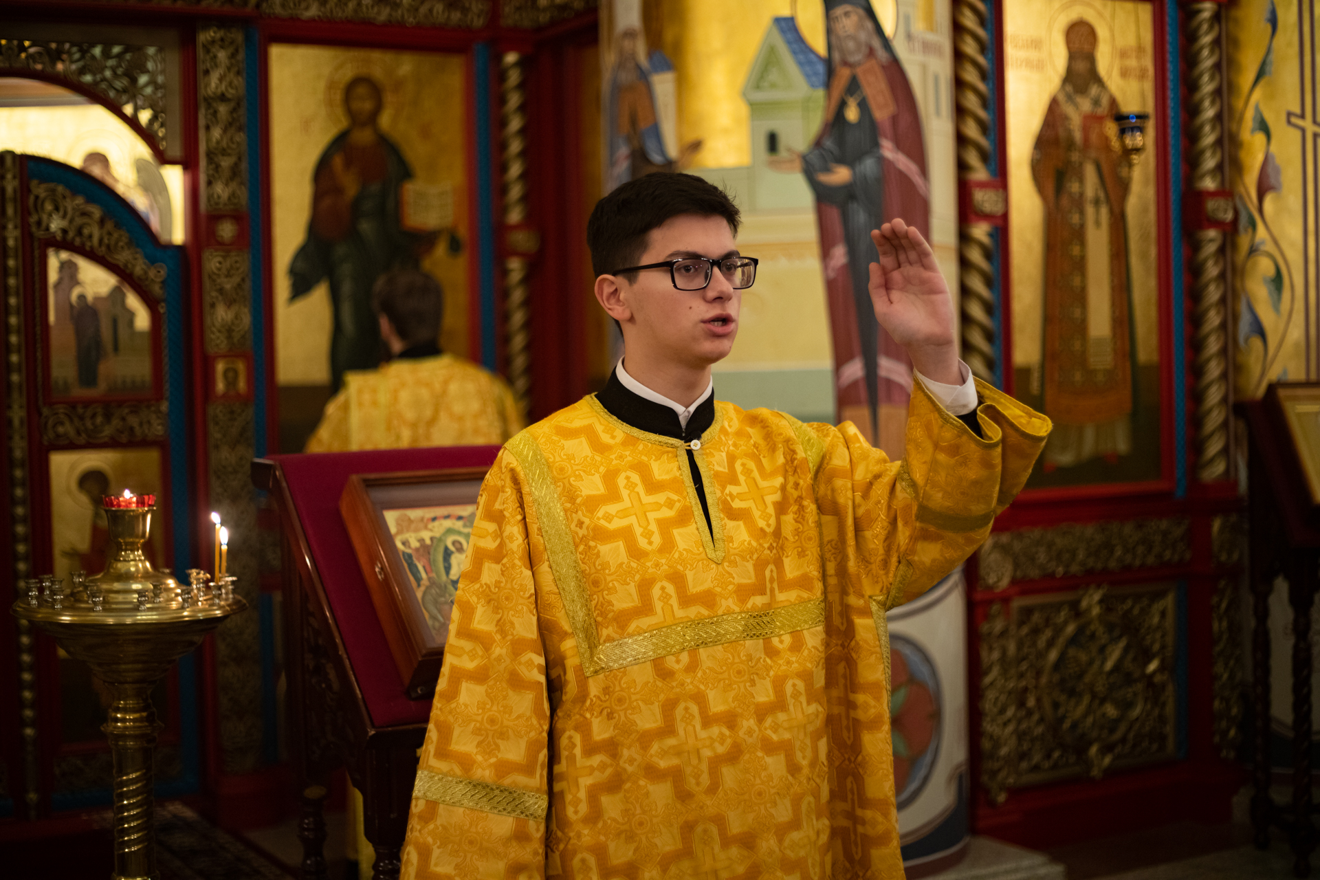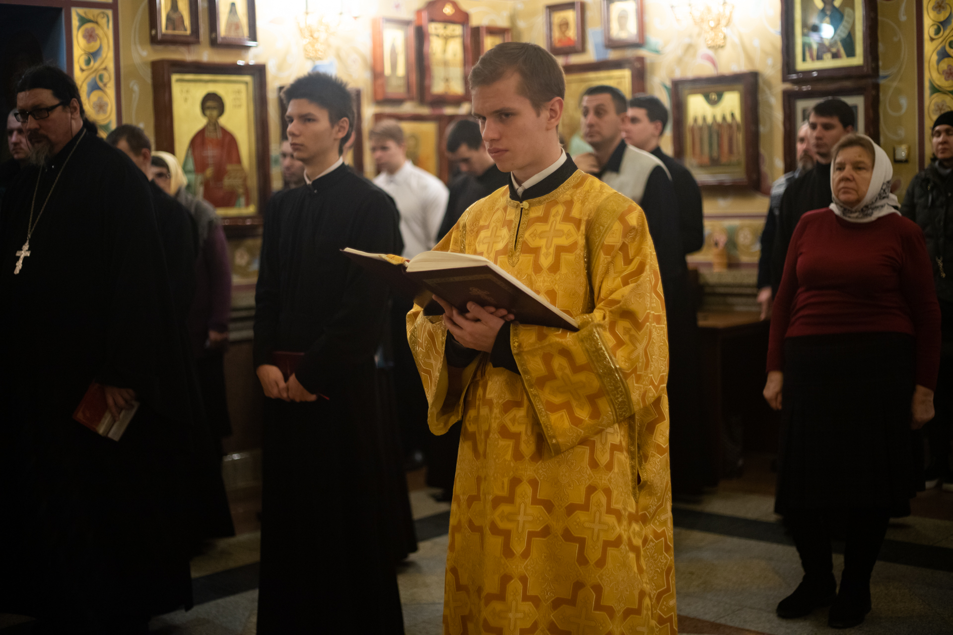 Чтение Апостола на церковнославянском языке совершил студент 1 курса Димитрий Шевченко, на русском – студент 2 курса Игорь Шеремет.