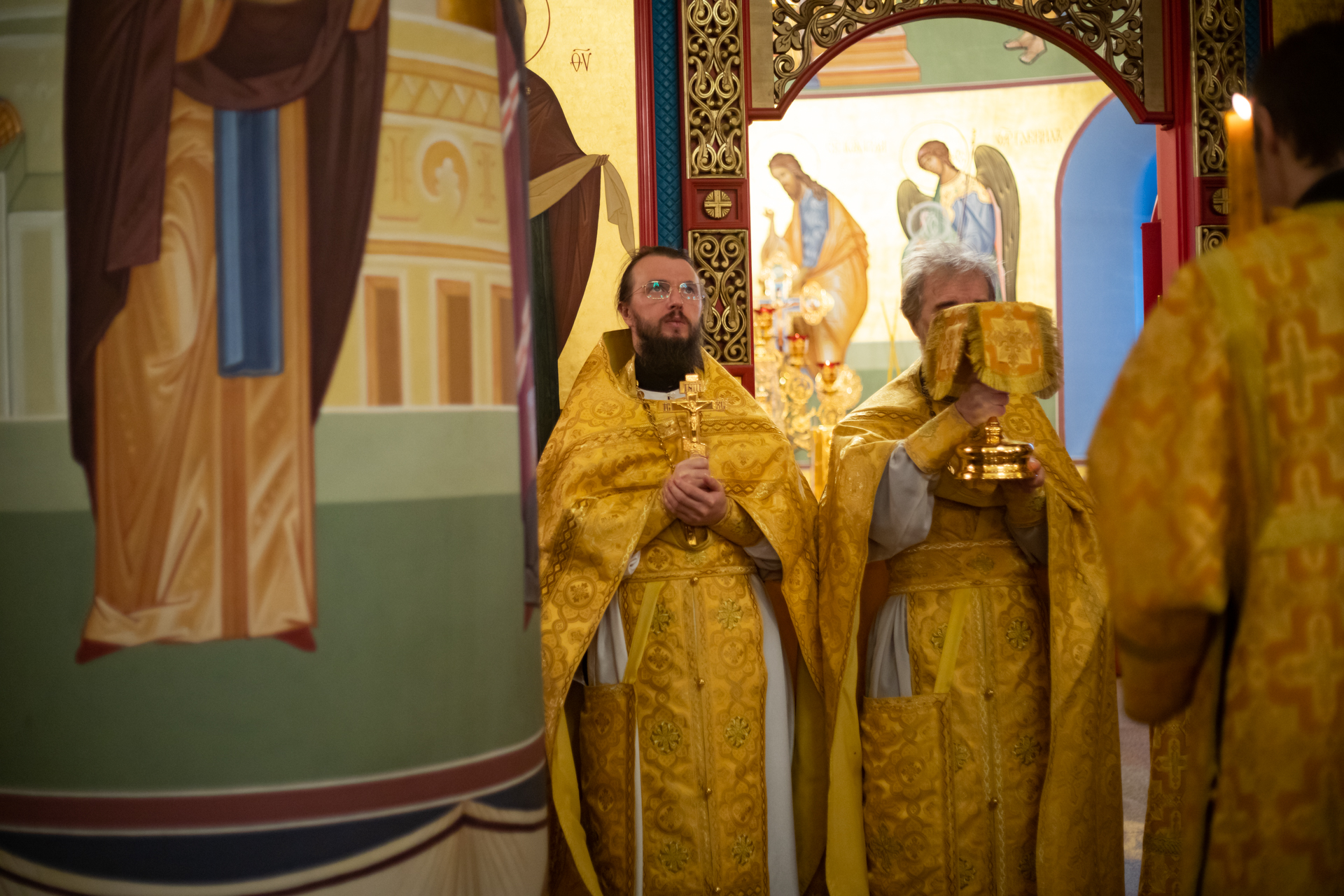 Богослужение возглавил студент заочного отделения иерей Георгий Кривоногов, в сослужении благочинного семинарского храма иеромонаха Николая (Дроздова) и студентов заочного отделения: иерея Игоря Примака, иерея Андрея Бухтеева, иерея Александра Карнапольцева и диакона Димитрия Тарапатова.