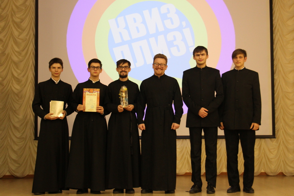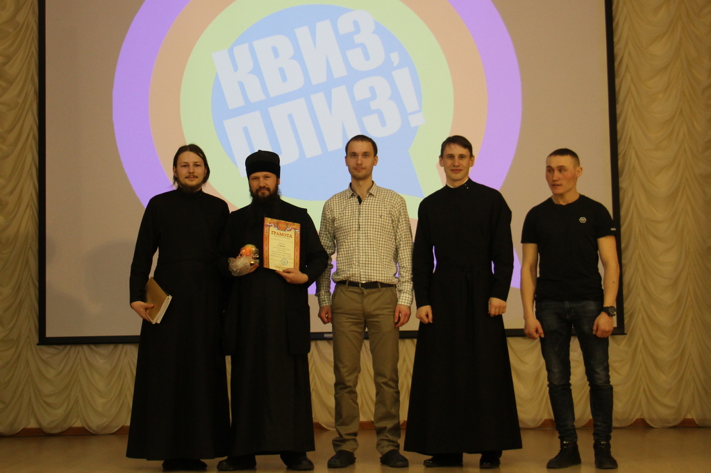 28 февраля в стенах Хабаровской духовной семинарии по благословению ректора состоялась викторина, приуроченная к празднованию масленицы. В этой программе, именующейся «Quiz-please!», приняли участие преподаватели, студенты семинарии и все желающие, в число коих входили и студенты других ВУЗов города Хабаровска. Смыслом интеллектуальной игры было в увлекательной форме провести опрос на тему религии и христианства, а так же на знание и понимание Священного Писания. Были награждены призами самые эрудированные, начитанные и подкованные во всех вопросах команды. Участники отвечали на вопросы из раздела "Что? где? когда?", а также были предложены загадки на логику и сообразительность. Победителями викторины стала команда, собранная со всех пяти курсов. Ребята в шуточной форме назвали свою команду "Сборной солянкой". Победителям были вручены призы, памятные грамоты и кубок победителя. Второе место заняла команда «Смешарики», а третье, команда состоящая из преподавателей, «Чай вшестером». После интеллектуальных игр состоялось чаепитие и вечер продолжился в формате настольных игр.