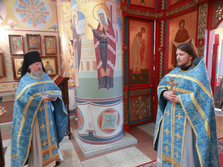 21 сентября, Православная Церковь празднует Рождество Владычицы нашей Пресвятой Богородицы. Согласно преданию святые родители Приснодевы Марии до этого не имели детей, хотя были уже в преклонных летах, а неимение детей в понимании еврейского народа того времени приравнивалось к проклятию или наказанию за грехи. И угодник Божий очень переживал из за этого и молился о даровании ему чада. Анна же глядя на птицу кормящую своих птенцов вопила к Богу о том, что даже птицы имеют детей в гнёздах, а у неё их нет. Тогда ей явился ангел Господень и сказал что её молитва услышана. В то же время явился ангел и к Иоакиму, бывшему тогда в пустыне, и утешил, принеся радостную весть о даровании им дочери. Мы же в богослужении проносим эту радость блаженных родителей через века. Накануне вечером в храме святителя Иннокентия Московского было совершено всенощное бдение, которое возглавил игумен Пантелеимон, ректор Хабаровской Духовной семинарии, ему сослужил ныне рукоположенный иерей Сергий Кривоногов. В сам день праздника была совершена Божественная Литургия, на которой студент 4 курса Тимофей Кривоногов и иерей Сергий произнесли проповеди, рассказывающие об истории праздника и его значении для всех верующих.